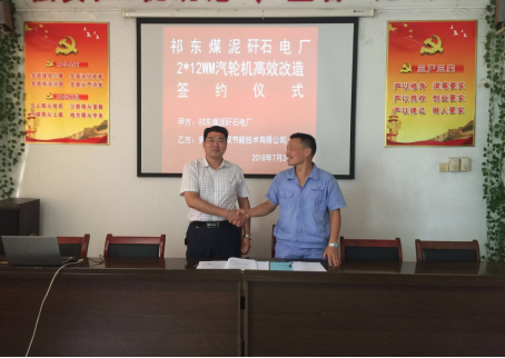 2018年7月2日,我公司順利簽定中國五百強——皖北煤電集團祁東煤泥矸石電廠兩臺12MW抽凝式汽輪發(fā)電機組通流結構綜合技改提效EPC項目,合同金額968萬元。