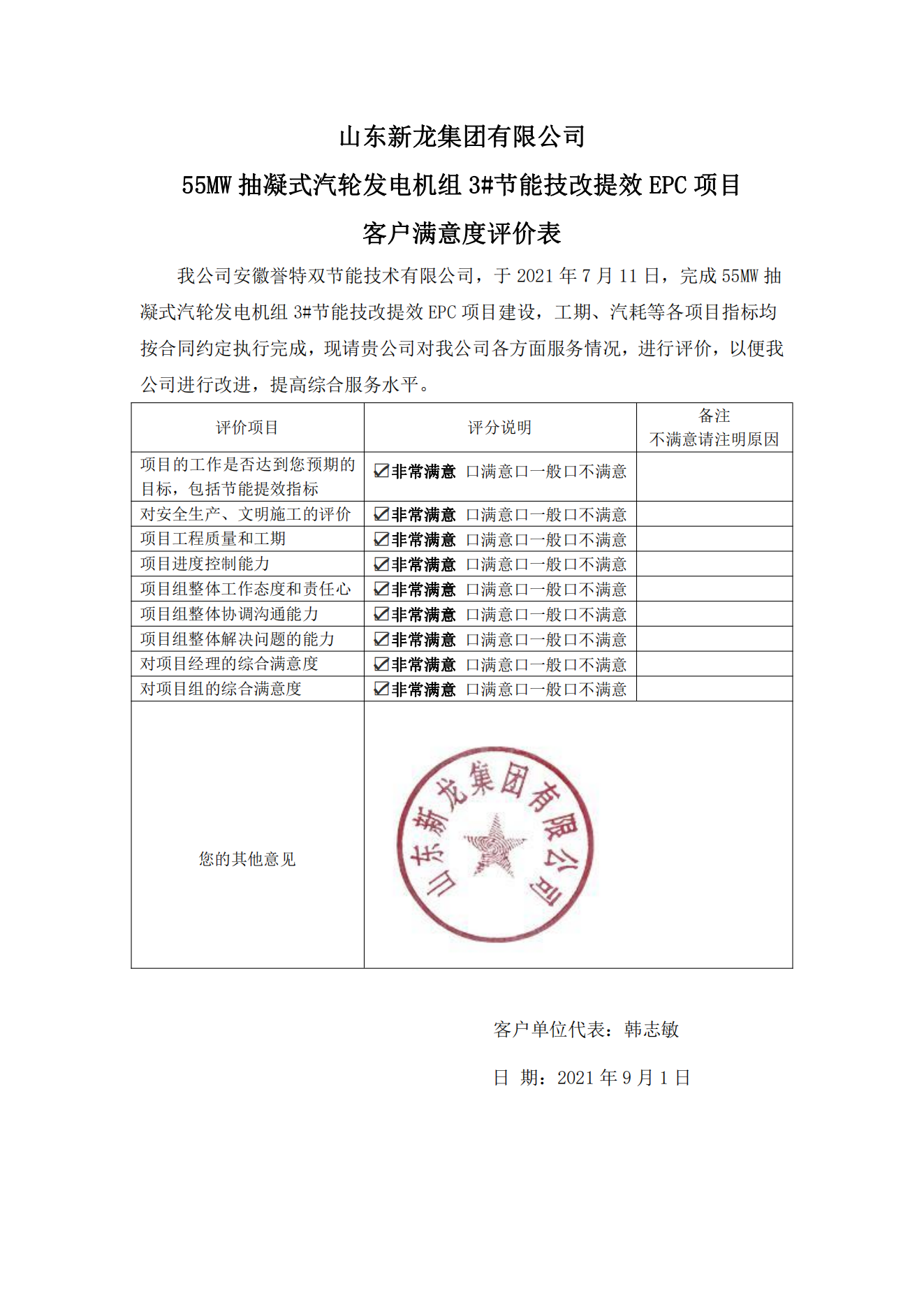 我公司EPC總包節能改造服務項目——山東新龍集團55MW高壓抽凝式汽輪機組通流改造節能提效項目順利通過工程驗收,機組各項技術指標均正常、穩定,綜合節能提效比例達5%以上,實測值7.3%;