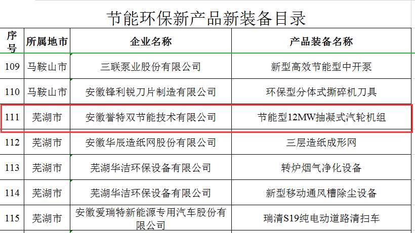 我公司“安徽譽(yù)特雙節(jié)能技術(shù)有限公司”入選“節(jié)能環(huán)保服務(wù)機(jī)構(gòu)目錄、核心產(chǎn)品“節(jié)能型12MW抽凝式汽輪機(jī)組”入選節(jié)能環(huán)保新產(chǎn)品新裝備目錄、核心技術(shù)“汽輪機(jī)組變工況改造節(jié)能技術(shù)”入選節(jié)能環(huán)保先進(jìn)技術(shù)目錄,此次入選,為公司連續(xù)四年入選。