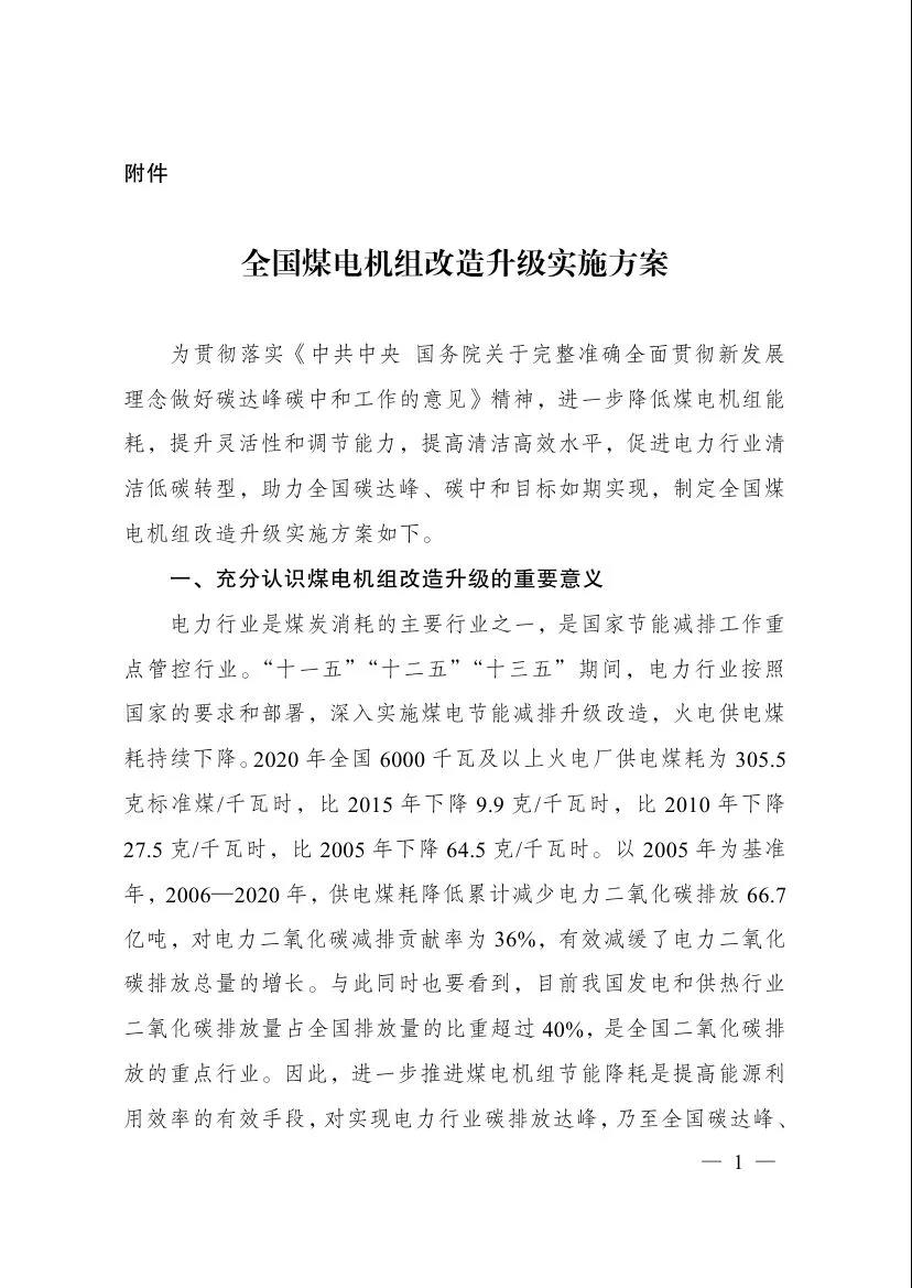 一、高度重視。我國力爭實現2030年前碳達峰和努力爭取2060年前碳中和的目標,對優化能源結構和煤炭清潔高效利用提出了更高要求。煤電機組改造升級是提高電煤利用效率、減少電煤消耗、促進清潔能源消納的重要手段,對推動碳達峰碳中和目標如期實現具有重要意義。各地、各企業要高度重視,將煤電機組改造升級作為一項重要工作抓好抓實抓細,切實提高煤電機組運行水平。