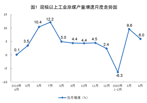 原煤生產增長較快。4月份,生產原煤3.2億噸,同比增長6.0%,增速比上月回落3.6個百分點;日均產量1074萬噸,環比減少14萬噸。1—4月份,生產原煤11.5億噸,同比增長1.3%。
