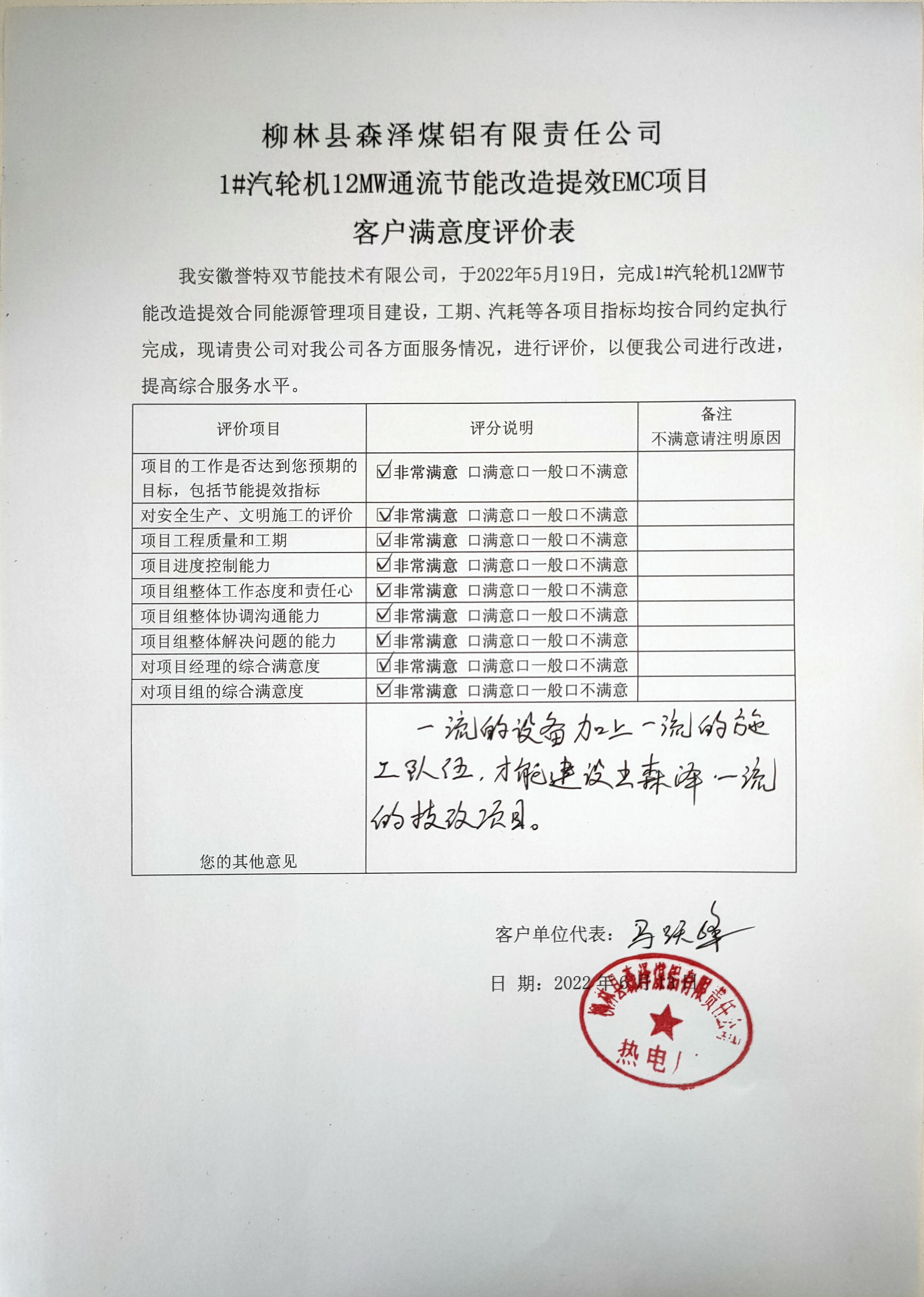 近日,公司順利簽定山西著名民營企業——柳林縣森澤煤鋁有限責任公司3#機組高背壓汽輪機合同能源管理項目,在此表示熱烈祝賀!