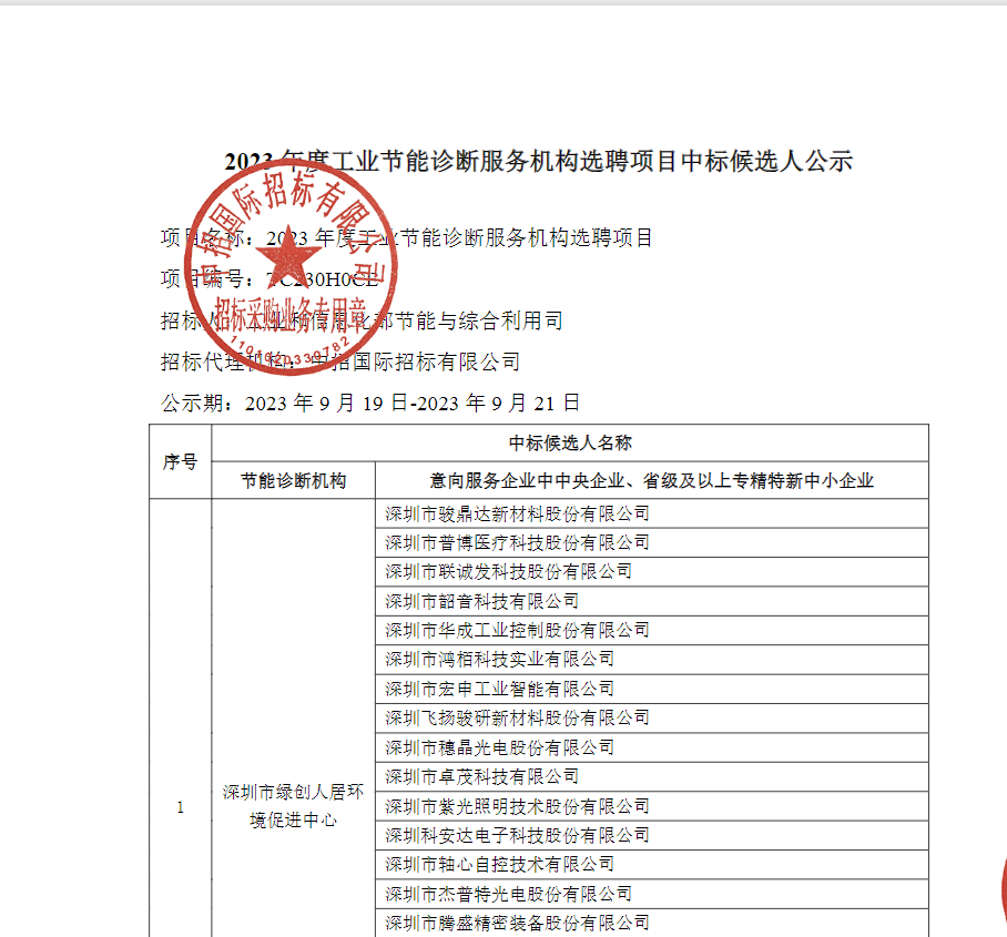 2023年9月,我公司成功中標(biāo)國(guó)家工信部2023年度工業(yè)節(jié)能診斷服務(wù)機(jī)構(gòu)選聘項(xiàng)目,本次中標(biāo)也是公司連續(xù)四年中標(biāo)工信部節(jié)能診斷服務(wù)機(jī)構(gòu)項(xiàng)目。