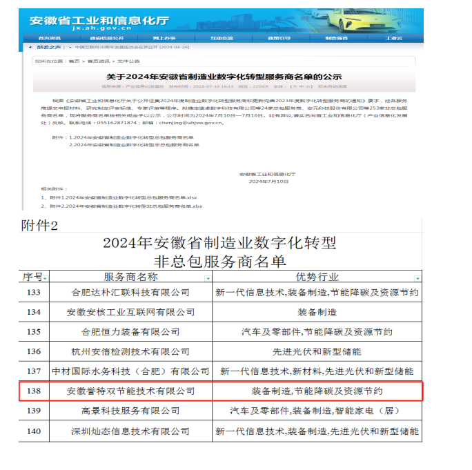 入選2024年安徽省 制造業(yè)數(shù)字化轉(zhuǎn)型服務(wù)商名單