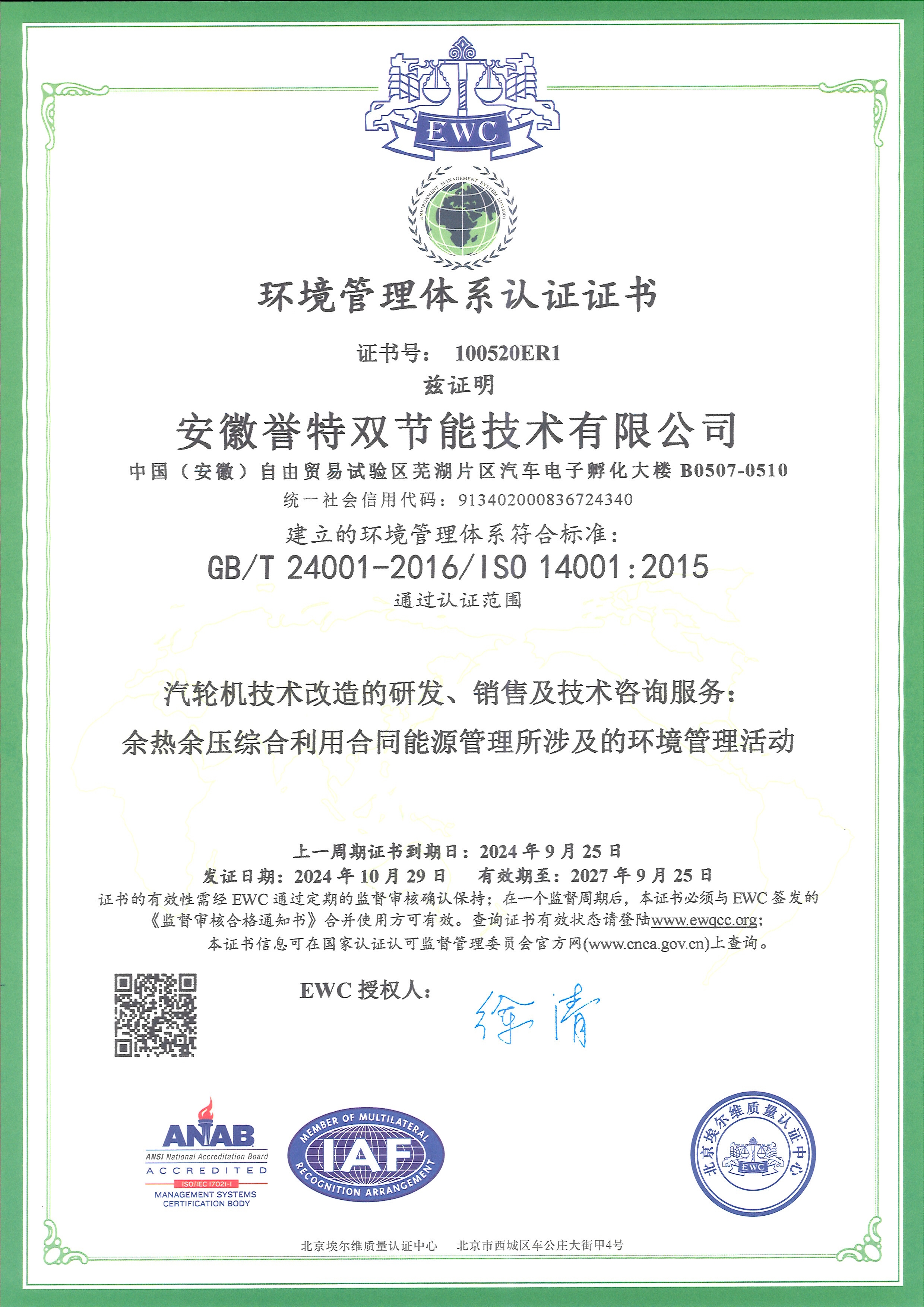 通過三體系認(rèn)證,公司建立了系統(tǒng)、開放、高效的管理體系,使企業(yè)的管理更加規(guī)范化、標(biāo)準(zhǔn)化,進(jìn)而提高企業(yè)的運(yùn)營效率和市場競爭力,在展示企業(yè)良好形象的同時(shí),推動(dòng)企業(yè)持續(xù)改進(jìn)和自我完善,由此提高公司的信譽(yù)和客戶信任度,為更多用能單位提供高質(zhì)量、高水平服務(wù)。